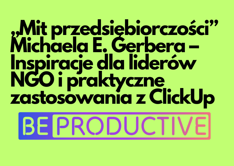 Jeśli jesteś osobą zarządzającą fundacją lub stowarzyszeniem, warto poznać kluczowe przesłania tej książki i zastanowić się, jak przełożyć je na działania w Twojej organizacji. Dodatkowo, w artykule na blogu BeProductive.pl omawiamy, jak połączyć te koncepcje z praktycznym zastosowaniem narzędzia ClickUp: Mit przedsiębiorczości Michaela E. Gerbera i ClickUp: Jak połączyć teorię z praktyką.