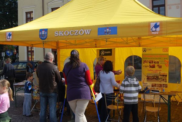 – Pierwszy dzień stał pod znakiem licznych pomiarów, jakie oferowaliśmy mieszkańcom – wyjaśnia Andrzej Cichy, kierownik filii ChSCh w Skoczowie. – Na skoczowskim rynku wolontariusze mierzyli ciśnienie tętnicze, tkankę tłuszczową, tlenek węgla w powietrzu wydychanym i obliczali wskaźnik masy ciała (BMI). Ponadto przeprowadzali spirometrię przesiewową – pomiar objętości płuc oraz pulsoksymetrię – badanie natlenienia krwi. Można też było skorzystać z porad na temat zdrowego stylu życia oraz materiałów prozdrowotnych oferowanych przez naszą filię. Na dzieci, których rodzice uczestniczyli w programie, czekały komiksy pt. Kodeks Zdrowego Życia.