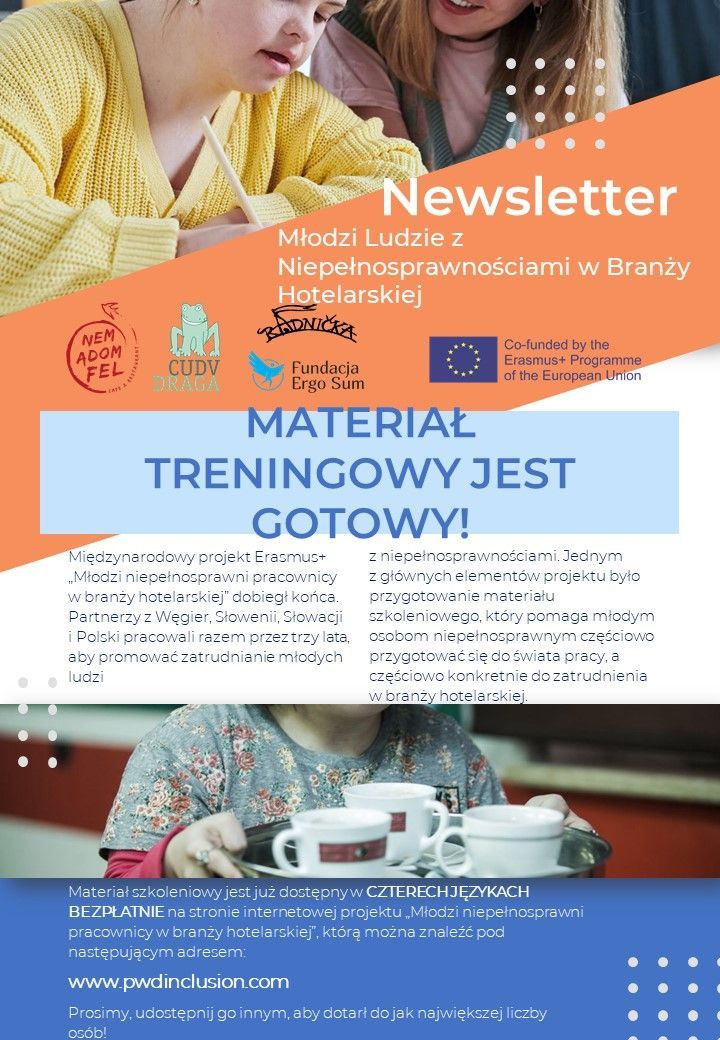 Fundacja Ergo Sum prowadząca Klubokawiarnie Życie jest fajne (www.zyciejestfajne.pl) zachęca do pobrania materiałów szkoleniowych przygotowanych w partnerstwie z organizacjami z Węgier, Słowenii i Słowacji dla osób chcących aktywnie przygotowywać osoby z niepełnosprawnościami do zawodu (branża hotelarsko-gastronomiczna).