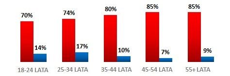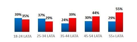 Najgorzej działania rządu oceniają osoby w wieku 55 lat i więcej (55%). Co ciekawe, wśród osób z grupy wiekowej 18-24 lata oceny pozytywne (39%) przeważają nad negatywnymi (35%).