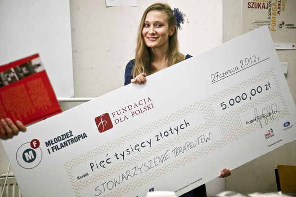 Marta i Janek wygrali 5000 zł dla Stowarzyszenia Terapeutów z Warszawy w konkursie realizowanym w ramach projektu "Młodzież i filantropia. Promowanie postaw obywatelskich wśród licealistów".