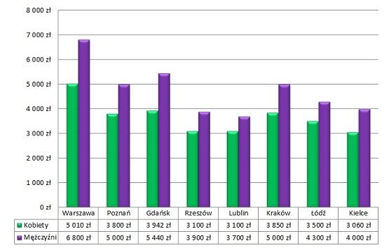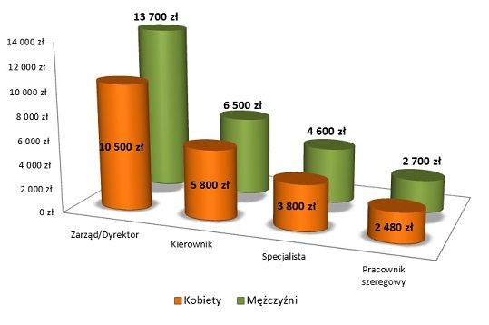 Na niekorzyść kobiet wypadają również porównania wynagrodzeń na wybranych stanowiskach. Na stanowisku dyrektora/dyrektorki, bądź członka/członkini zarządu mężczyźni zarabiali 13 700 zł brutto, kobiety natomiast 10 500 zł. W liczbach bezwzględnych różnica wynosi aż 3200 zł. Dysproporcje widoczne są jednak na wszystkich stanowiskach – na każdym szczeblu zawodowej kariery.