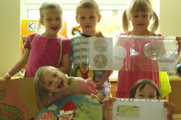 Uczestnicy projektu wzięli udział w konkursie na projekt pieniążka. Było to zadanie domowe do zrealizowania razem z rodzicami. Prace były bardzo pomysłowe pod względem formy oraz treści. Spośród wszystkich wybrano jeden, który wydrukowano - był on środkiem płatniczym (walutę wymieniano w kantorze) podczas corocznego festynu rodzinnego w Przedszkolu. Z rozmów z uczestnikami tego festynu wynikało, że pieniądz i pomysł się spodobały. Zarobione pieniądze przeznaczono na wyposażenie placu zabaw.