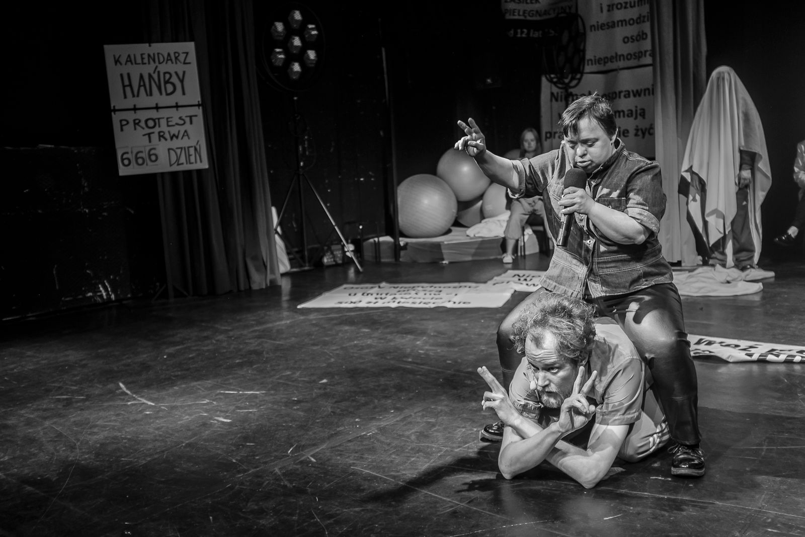 Aktorzy poruszają tematy, które nie przechodzą przez gardło uczestnikom publicznego dyskursu. Robią to we własnym imieniu, na własnych zasadach, na scenie, która staje się nie tylko miejscem kreacji, ale również amboną, z której ogłaszają światu: jesteśmy tu jako artyści, nie jako adresaci czułego pobłażania i beneficjenci działań „na rzecz”. Wcielają się w role, jednocześnie przejmując kontrolę nad rzeczywistością. Na scenie to oni piszą życiu scenariusze.