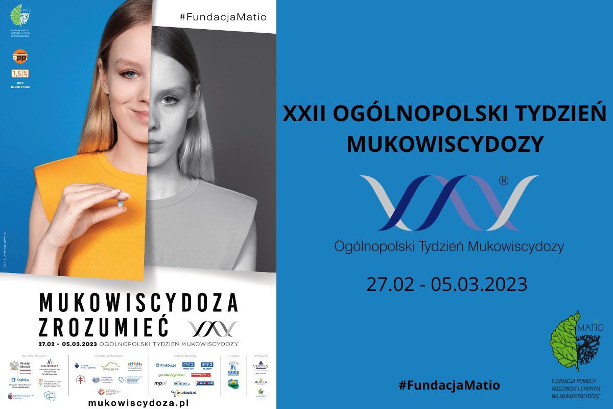 FUNDACJA MATIO w dniach od 27 lutego do 5 marca 2023 r. po raz dwudziesty drugi organizuje kampanię społeczną pod nazwą „XXII Ogólnopolski Tydzień Mukowiscydozy”, która w całości poświęcona będzie upowszechnieniu wiedzy o mukowiscydozie, jej objawach, diagnozowaniu, leczeniu oraz perspektywie dłuższego życia z tą chorobą.