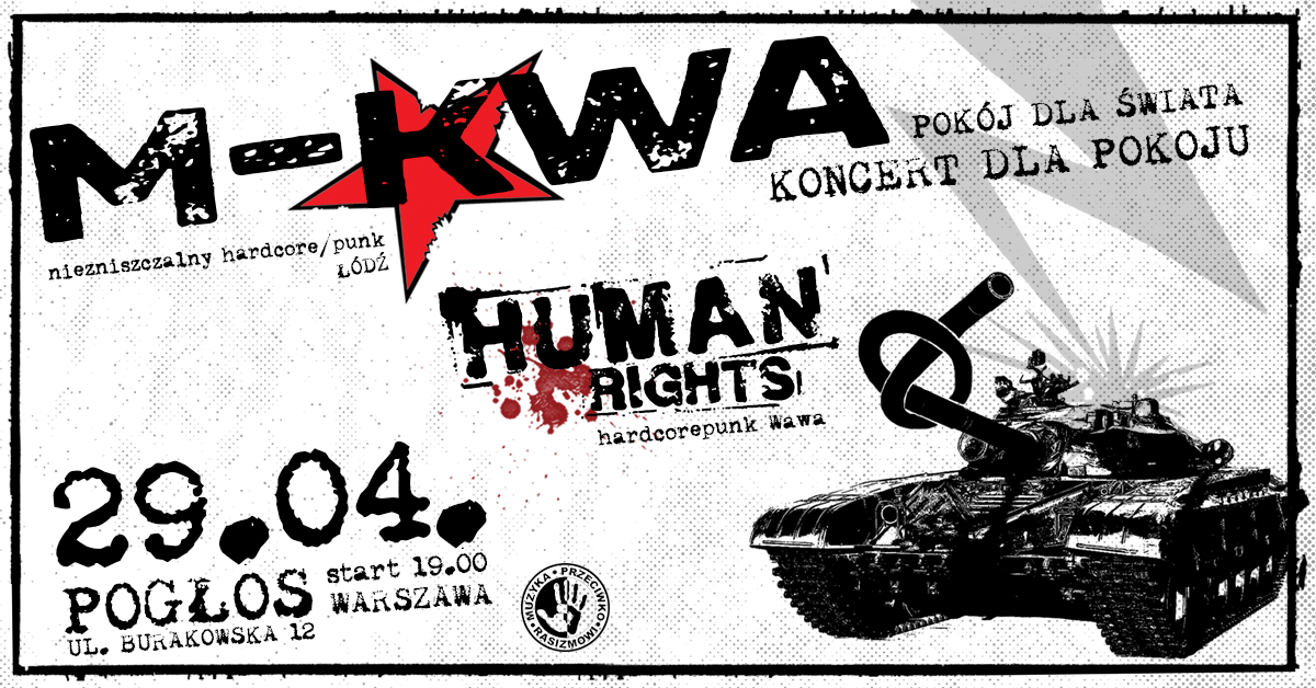 Human Rights is a hardcore punk band from Warsaw. For years, it has been supporting the Music Against Racism campaign of the „NEVER AGAIN” Association. The band describes its work as „energetic music and positive and direct lyrics coming out of irritation at intrusive attempts to manipulate our lives only because of differences in sex, views, religion or nationality. So there is fire and fury, there is also some melody and catchy choruses about freedom, respect, compassion, tolerance.”
