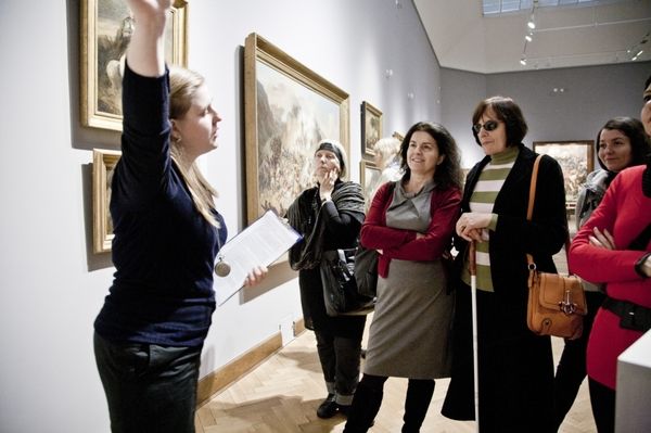 Na zdjęciu: Zwiedzanie Muzeum Narodowego przez osoby niedowidzące i niewidome. Dzięki audiodeskrupcji osoby z dysfunkcjami wzroku mogą zobaczyć obraz w wyobraźni.
