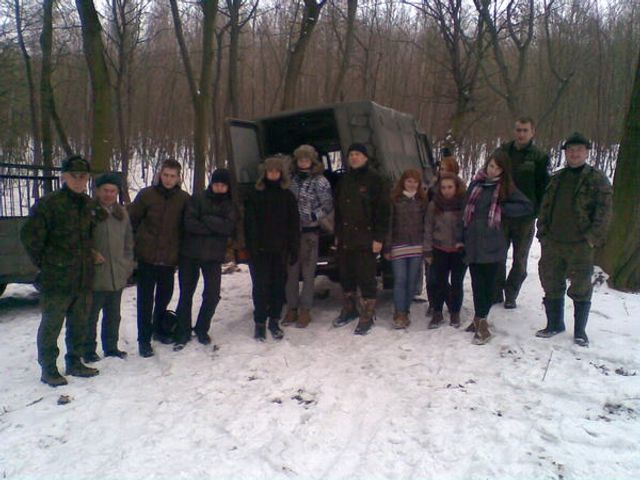 Podsypy to urządzenia gospodarcze w łowisku przeznaczone do dokarmiania zimą bażantów i kuropatw,ale też zajęcy,a czasami saren i dzików,które w czasie śnieżnych i mroźnych zim korzystają z tych urządzeń,które znajdują się łowisku w stałych miejscach od lat. Do przemieszczenia się po terenie łowiska dowódca Jednostki Wojskowej w Hrubieszowie pułkownik Piotr Bieniek skierował wojskowego Honkera wraz z kierowcą starszym szeregowym Tomaszem Korkoszem,którym przemieszczała się młodzież szkolna z Zespołu Szkół Miejskich numer 1 w Hrubieszowie: Justyna Smal, Katarzyna Jarszak, Paulina Pisarczyk, Barbara Pisarczyk, Ireneusz Litwin, Patryk Panasiewicz i Marcin Kania z Jednostki Strzeleckiej 2020 w Hrubieszowie pod opieką Tomasza Wojciecha Antoniuka myśliwego z Wojskowego Koła Łowieckiego nr 110”Orlik” w Hrubieszowie i jednocześnie prezesa Stowarzyszenia Edukacyjnego „Razem” w Hrubieszowie.