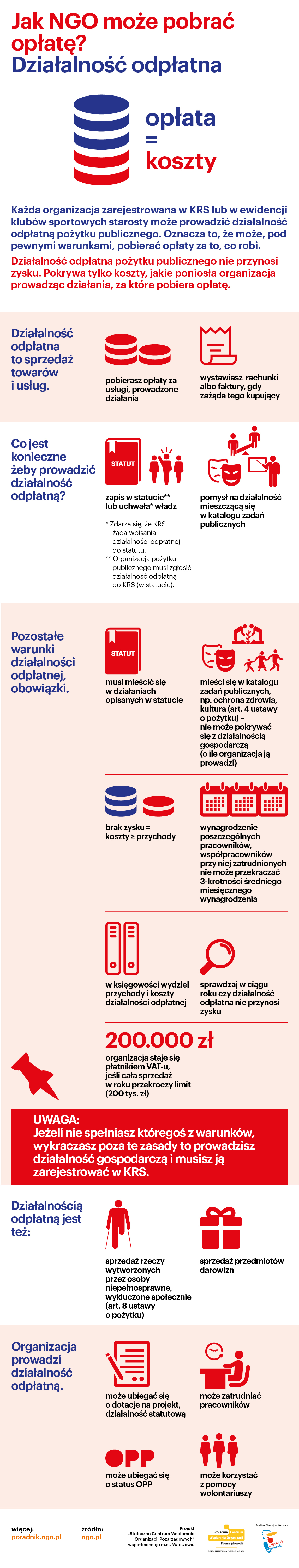 Infografika: Jak NGO może pobrać opłatę? Działalność odpłatna