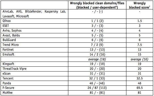 Bezpodstawne blokowanie domeny wpływa zarówno na obniżenie zaufania w stosunku do podnoszonych przez dany pakiet alarmów, jak również na reputację samej domeny, która może ponieść straty finansowe, np. na skutek wycofania się reklamodawców. Dlatego AV-Comparatives informował producentów o wszystkich tego typu przypadkach, zalecając zastosowanie mechanizmów blokujących witryny tylko w przypadku wykrycia podejrzanych fragmentów kodu. Ale nawet wtedy zalecane jest blokowanie jedynie poszczególnych fragmentów, a nie całości witryny.