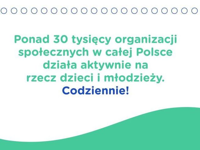 Niemal połowa z 70 tysięcy działających aktywnie stowarzyszeń i fundacji pracuje codziennie na rzecz najmłodszych. Prowadzą świetlice, kluby, szkoły, przedszkola, organizują zajęcia pozaszkolne, półkolonie. Zajmują się edukacją, rozwijaniem zainteresowań, zdrowiem, rehabilitacją, przeciwdziałaniem biedzie i przemocy wobec dzieci, prowadzą placówki opiekuńczo-wychowawcze, programy stypendialne. Czy bez tych wszystkich działań świat młodego człowieka byłby taki sam?