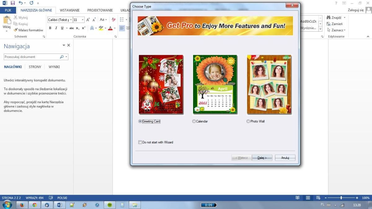 Od chwili wyboru kartki odpowiadającej naszym wymaganiom możemy zdecydować się na konkretne układy kartki, wybrać opcje strony, rozmiar kartki czy style jej zginania. W tym miejscu dostosujemy też jakie czcionki i kolory będą dominować w naszej kartce świątecznej. Tak przygotowaną kartkę świąteczną musimy jeszcze wypełnić własnymi fotografiami zamieniając domyślne w projekcie i utworzyć własne teksty.