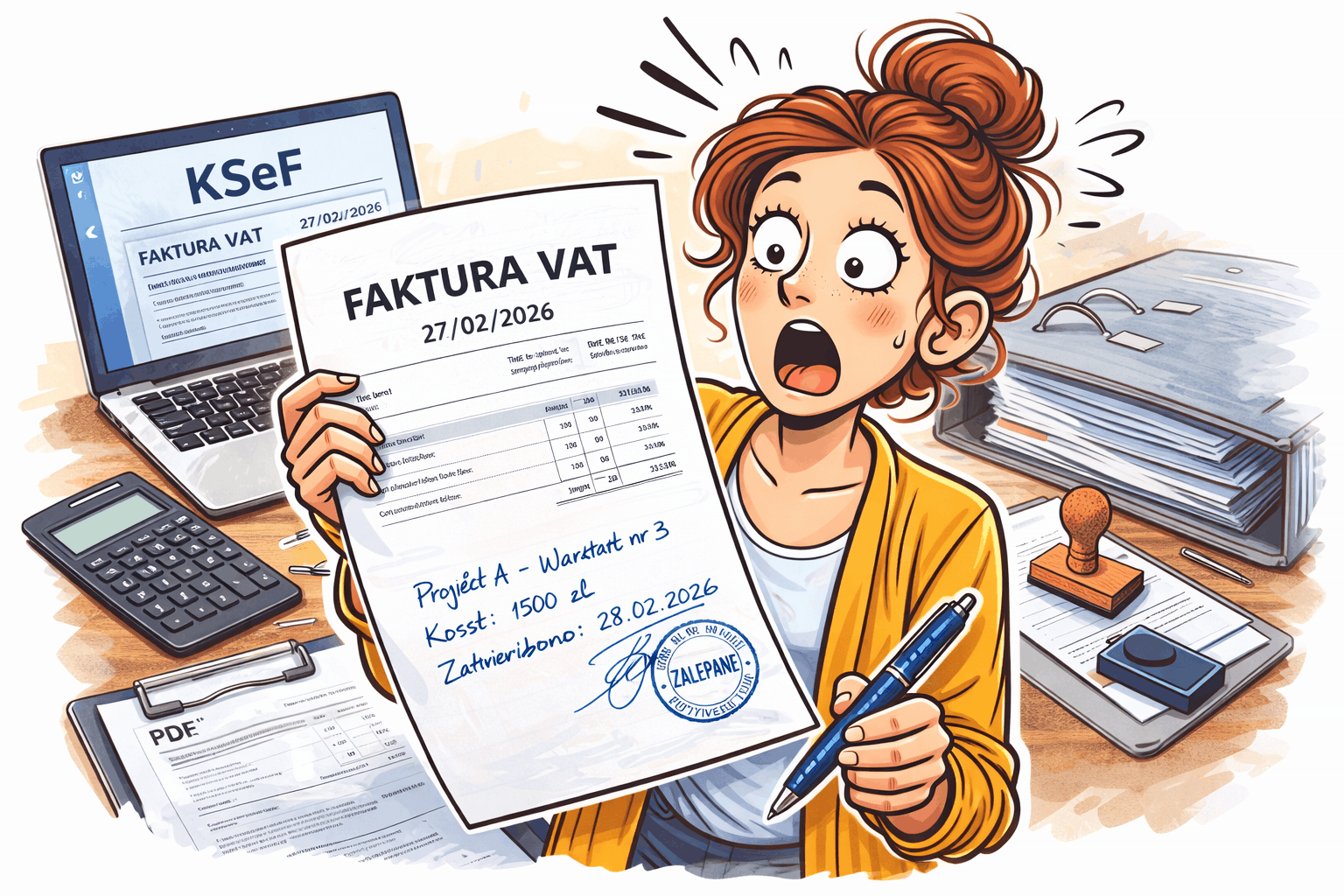 I tak ta jedna faktura ma dziś całkiem bogate życie. Jest w KSeF. Jest w EOD. Jest jako PDF z opisem. Leży też w segregatorze. Skserowana, żeby nie wyblakła. Na wszelki wypadek. Zaklepana. Trzy razy stuknięta w drewno.