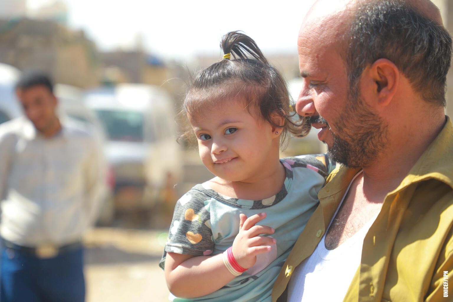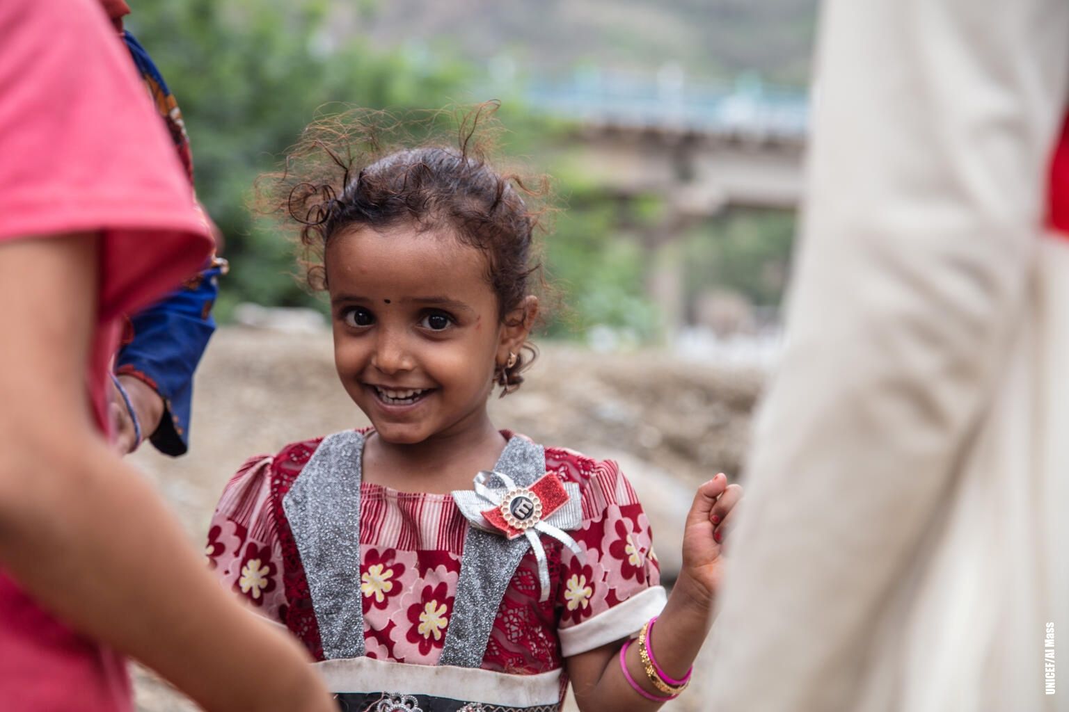 „Niezmiernie się cieszę, że mobilny zespół UNICEF odwiedził nasz obóz i zaszczepił dzieci. Zachęcam rodziców, aby zaszczepili swoje dzieci, bo to oni są odpowiedzialni za ich zdrowie”, mówi Bakil patrząc z uśmiechem na swoją córkę Salmę.