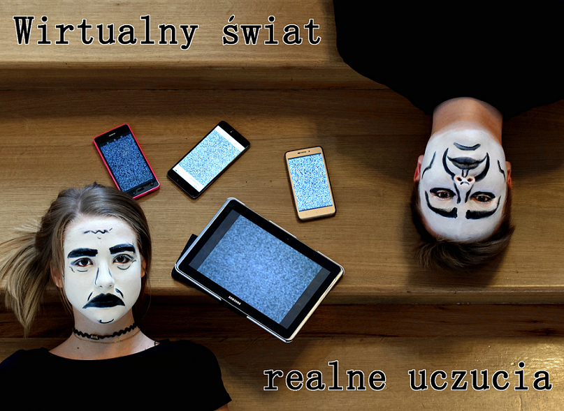 · PROGRAM ERASMUS+ MŁODZIEŻ: zdjęcie „Wirtualny świat – realne uczucia” z polsko-łotewskiego projektu "SOCIAL MEDIA - SOCIAL LIFE" zrealizowanego w 2017, w ramach którego młodzież z Lubania spotkała się z rówieśnikami z Duagavpils; autorzy zdjęcia - grupa projektowa w składzie: Jorens Dobkevičs, Kinga Kotlarek, Kornelia Minkiewicz, Patrycja Semeniuk, Snežana Grahovska, Vjačeslavs Kozlovskis, przy wsparciu Gabrieli Lubas (opracowanie plakatu),