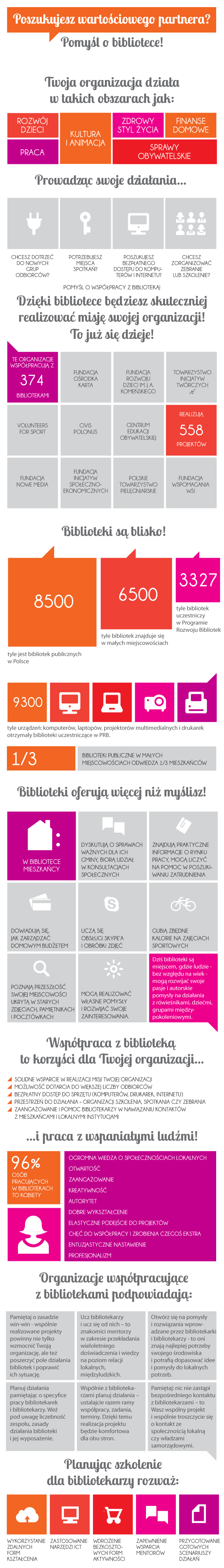 W poniższej infografice znajdziesz także praktyczne wskazówki i podpowiedzi tych NGOsów, które już z bibliotekami współpracują. A jeśli chcesz poznać kulisy tej współpracy i dowiedzieć się więcej o jej przebiegu i efektach - zajrzyj do artykułów: