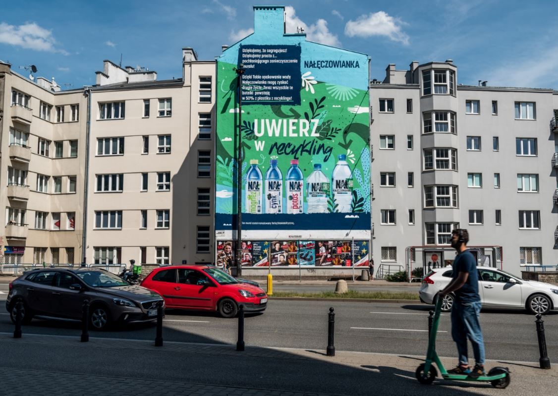 W centrum Warszawy pojawił się specjalny mural namalowany farbami pochłaniającymi zanieczyszczenia, na którym marka naturalnej wody mineralnej Nałęczowianka dziękuje konsumentom za poprawne sortowanie odpadów.
