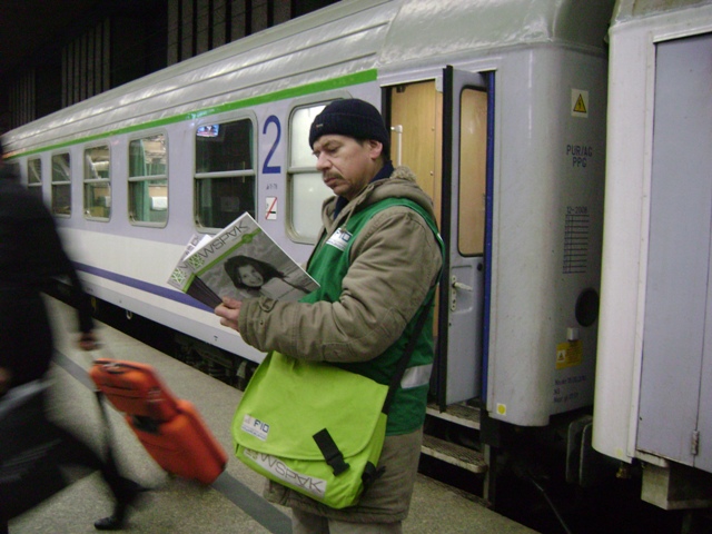 Podziemia stołecznego Dworca Centralnego. Tłumy spieszące na pociąg, pasażerowie zabijający czas przed odjazdem i policyjni „tajniacy” czyhający na łamiących prawo. Wśród nich migają zielone kamizelki sprzedawców magazynu WSPAK – drugiej w Polsce gazety ulicznej, którą od listopada 2008 r. można kupić w Warszawie.