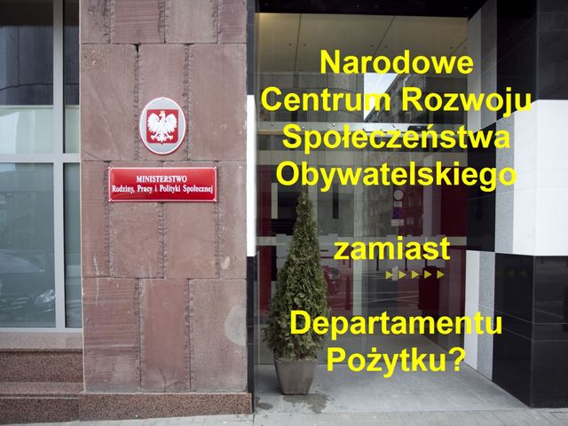 Pierwszym krokiem w tym kierunku było powołanie Pełnomocnika rządu ds. społeczeństwa obywatelskiego, do którego zadań należy m.in. przygotowanie projektu niniejszej ustawy. Projektowana nowa instytucja przejmie zadania DPP, rozszerzając je o nowe priorytety. Rozwiązanie to pozwoli uzyskać perspektywę horyzontalną w zakresie koordynacji i monitoringu polityk wsparcia państwa dla sektora pozarządowego, niemożliwą z poziomu DPP w Ministerstwie Rodziny, Pracy i Polityki Społecznej. Ma to istotne znaczenie chociażby w kontekście koordynacji i standaryzacji resortowych programów współpracy z organizacjami pozarządowymi, do wdrażania których obliguje ministerstwa ustawa z dnia 24 kwietnia 2003 r. o działalności pożytku publicznego i o wolontariacie (Dz. U. z 2016 r., poz. 239 i 395). Narodowe Centrum zostanie także operatorem Funduszu Inicjatyw Obywatelskich, a docelowo także planowanych Funduszu Grantów Instytucjonalnych i Funduszu Inicjatyw Edukacyjnych.
