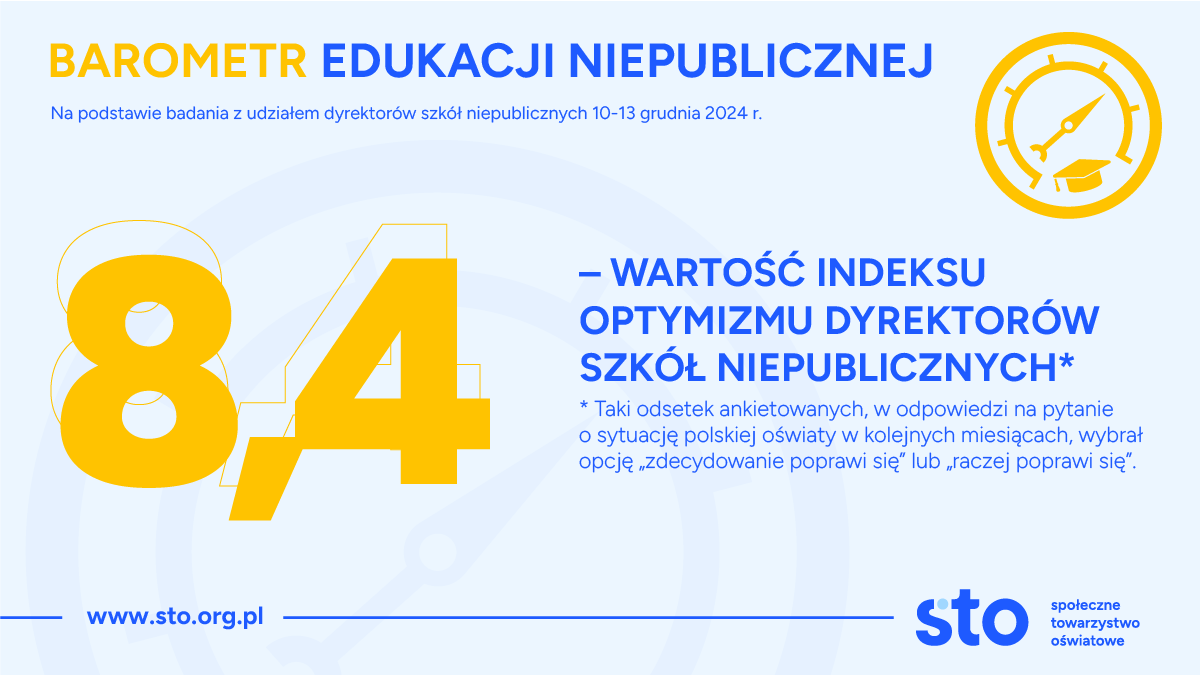 Społeczne Towarzystwo Oświatowe bada nastroje dyrektorów szkół niepublicznych od września 2021 r. Kolejne odsłony „Barometru Edukacji Niepublicznej” są realizowane co kwartał.