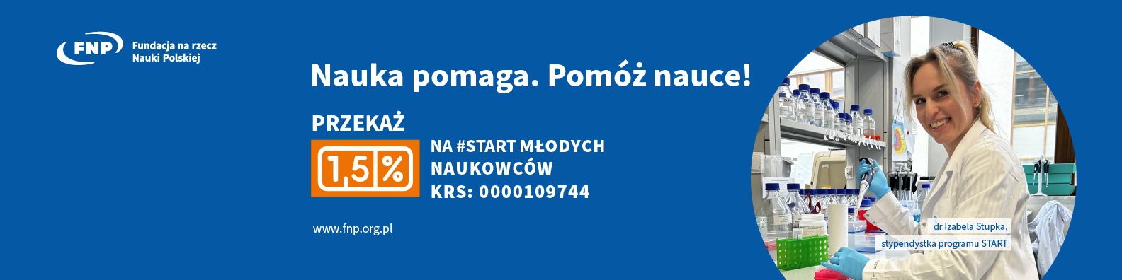 Fundacja na rzecz Nauki Polskiej (FNP) rozpoczęła kampanię 1,5% podatku. Celem zbiórki jest wsparcie młodych naukowców, stypendystów programu #START FNP. Nauka odpowiada na różne potrzeby współczesnego i przyszłego świata, daje nam wszystkim szanse na lepsze życie. Dlatego hasło kampanii brzmi: Nauka pomaga. Pomóż nauce!