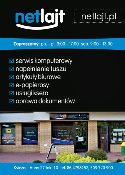 Właśnie w taki sposób mówią o swojej działalności członkowie spółdzielni Netlajt. Dostrzegają, że nie wszystkie założenia biznesplanu zostały jeszcze zrealizowane, ale mają nadzieję, że stanie się to w najbliższym czasie. Pomimo krytycyzmu wobec siebie należy podkreślić, iż wiele rzeczy udało się osiągnąć spółdzielni w tak krótkim czasie. Gdy stoi się przed siedzibą spółdzielni Netlajt przy ulicy Księżnej Anny widać, że członkowie dbają o wizerunek i rozpoznawalność swojego miejsca pracy. Przede wszystkim potencjalnych klientów wita duży baner z nazwą firmy i usługami, jakie świadczy spółdzielnia.
