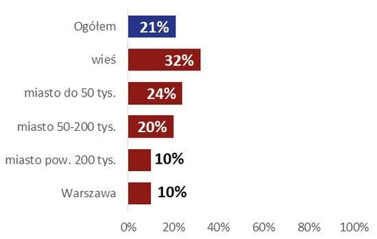 W odniesieniu do obecności organizacji w internecie (podobnie jak w przypadku korzystania z internetu) widać też różnice pomiędzy wsią a miastami. W sieci kompletnie nieobecnych jest 32% organizacji ze wsi, jedna czwarta (24%) organizacji z małych miast oraz jedna piąta (20%) z miast średniej wielkości. Najrzadziej nieobecność w internecie zdarza się natomiast wśród stowarzyszeń i fundacji z największych ośrodków. Tylko co dziesiątej z nich nie można odnaleźć na stronach www, portalach społecznościowych lub Biuletynie Informacji Publicznej.