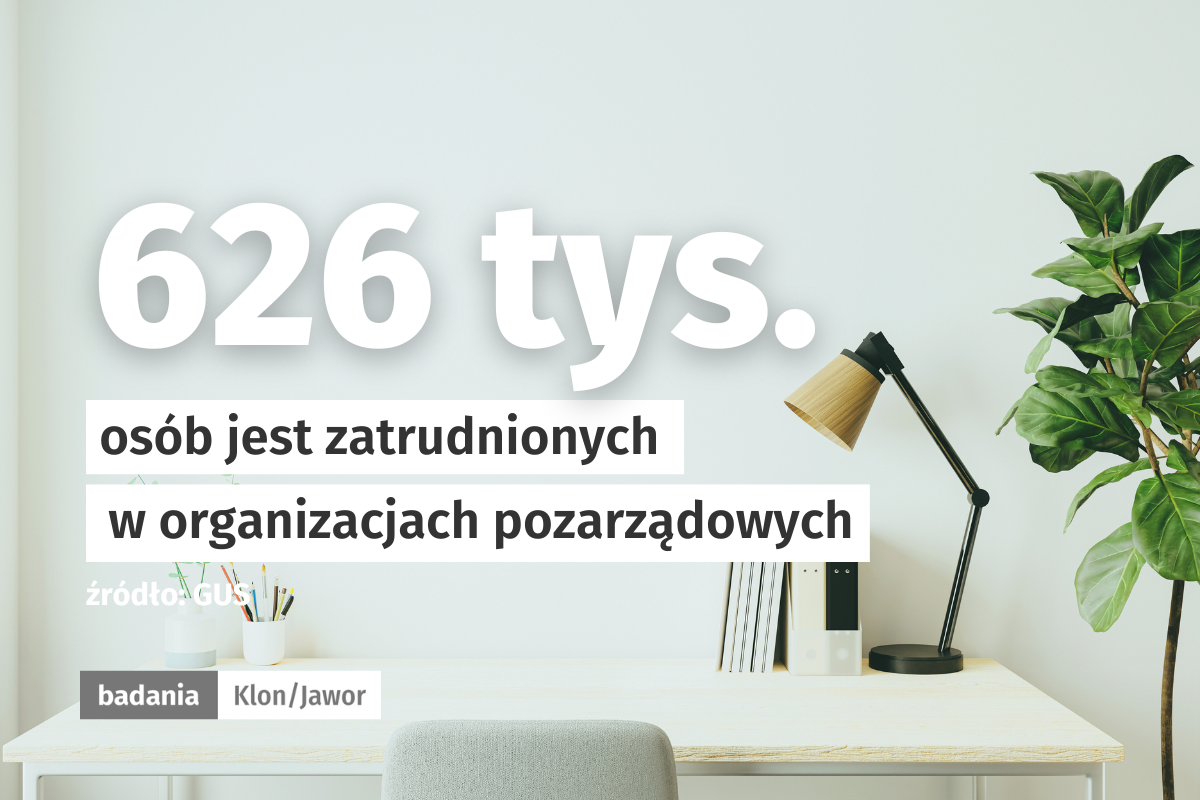 626 tysięcy osób jest zatrudnionych w organizacjach pozarządowych. Zdecydowana większość (440 tys.) to pracowniczki i pracownicy, którzy są zatrudnieni w NGO na umowy cywilnoprawne, a pozostałe osoby są zatrudnione na umowę o pracę. Niezależnie od formy zatrudnienia, organizacje są głównym miejscem pracy dla 124 tys. osób.