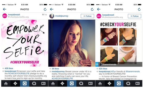 Kampanie #CheckYourSelfie wystartowała po części dlatego, że Keep a Breast wiedziało, gdzie i w jaki sposób zaangażować swoich słuchaczy. Ze względu na fakt, że z Instagrama korzystają głównie osoby młode, prowadzenie tam kampanii skierowanej właśnie do pokolenia milenialsów miało sens. Wezwanie kampanii: „Check Your Selfie” także bardzo dobrze współgra z serwisem, gdzie codziennie publikowane są setki selfie.
