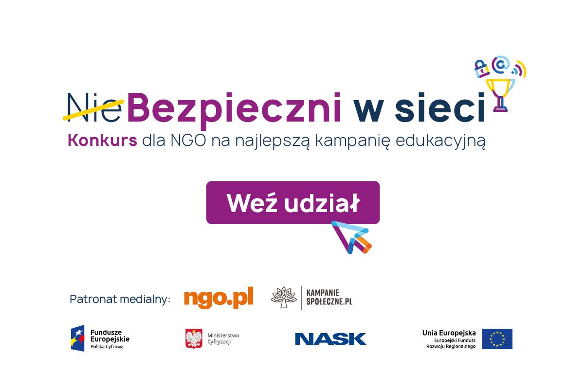 Państwowy Instytut Badawczy NASK we współpracy z Ministerstwem Cyfryzacji. Patronat medialny: ngo.pl oraz kampaniespoleczne.pl.
