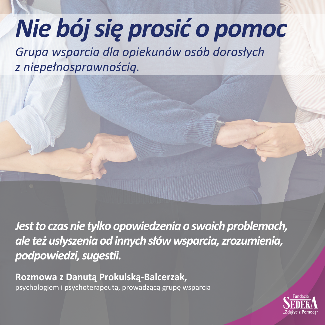 Danuta Prokulska-Balcerzak, psycholog, trener, psychoterapeuta psychodynamiczny, która prowadzi w Fundacji Sedeka grupę wsparcia dla opiekunów osób z niepełnosprawnością, opowiedziała w wywiadzie, jak zadbać o siebie i jak radzić sobie z poczuciem osamotnienia w trudnej sytuacji życiowej.