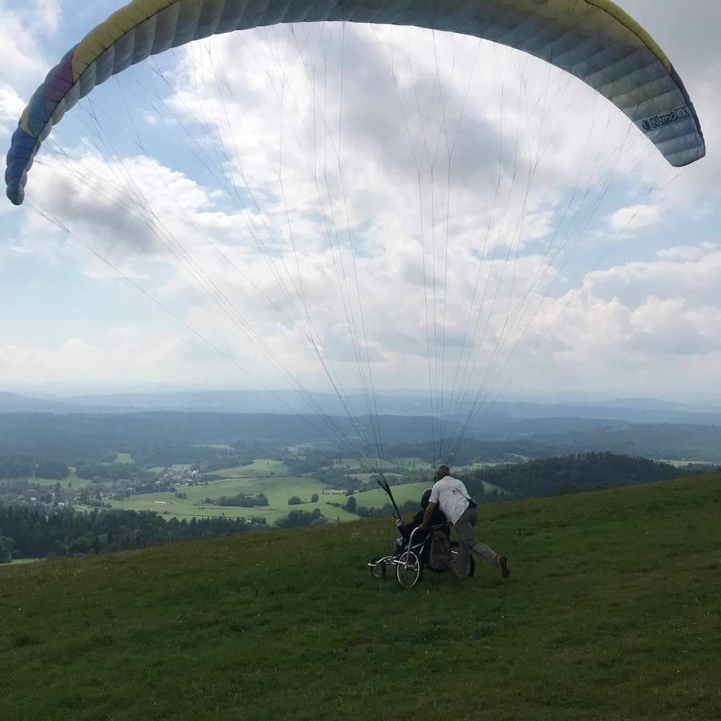 – Zajęcia paralotniowe i szybowcowe dla osób z niepełnosprawnością ruchową prowadzimy od 2015 roku. Większość z uczestników to osoby, które w codziennym życiu poruszają się na wózkach inwalidzkich, dlatego największym wyzwaniem było zapewnienie odpowiedniego sprzętu i oprzyrządowania, które zastąpi niesprawne nogi. Do prowadzenia zajęć paralotniowych skonstruowane zostały specjalne wózki – mamy ich już trzy. Zapewniają bezpieczny start i lądowanie! Do tej pory 10 osób (w tym Grzegorz!) zdobyło licencje pilota paralotni. Mamy też 2 pilotów szybowcowych! – podsumowuje Karol Włodarczyk, Wiceprezes Fundacji PODAJ DALEJ.