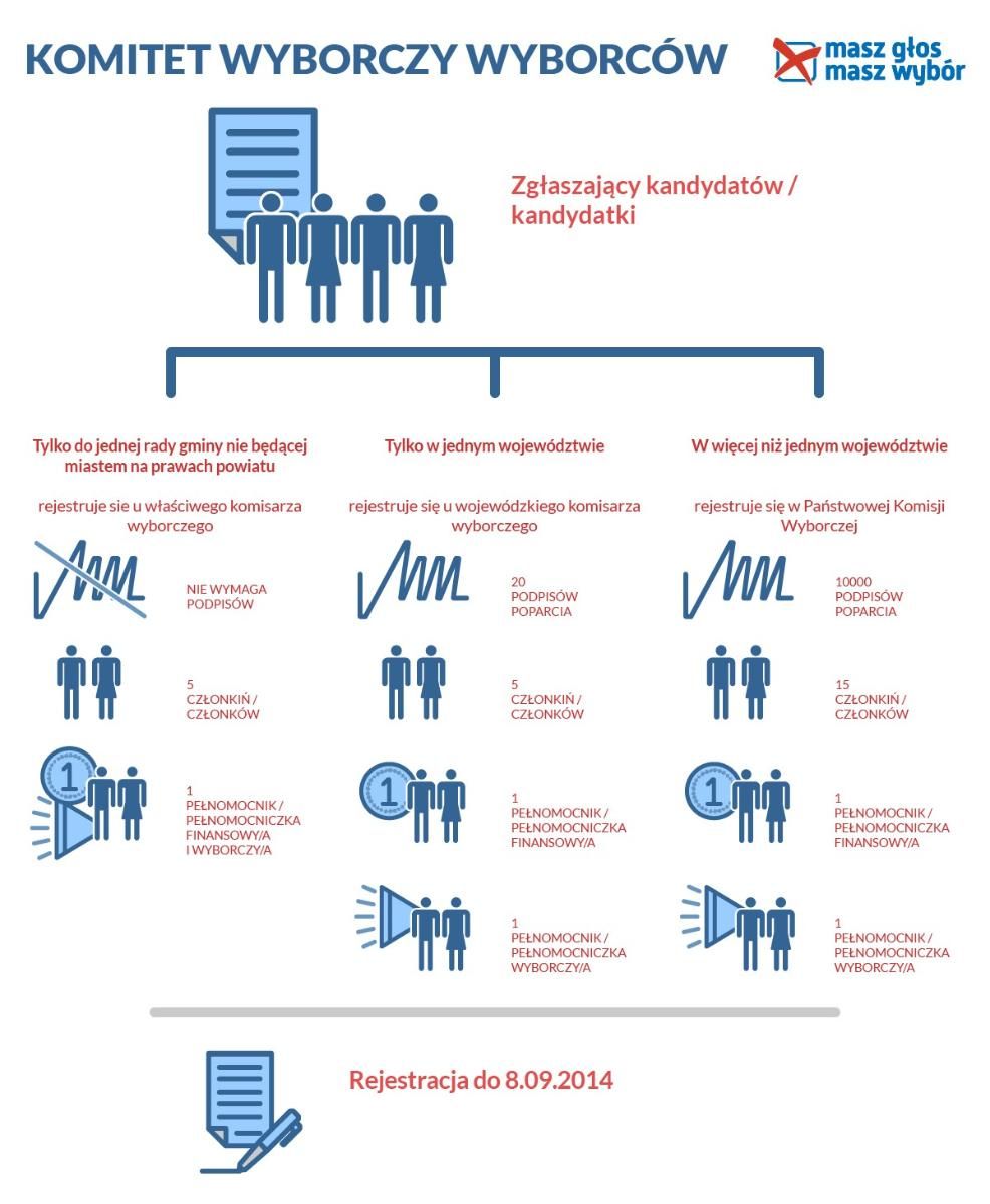 Od dziś, 27 sierpnia, do 8 września 2014 można rejestrować komitety wyborcze, które wystawią kandydatów na wójtów, burmistrza i prezydentów oraz do rad gmin, powiatów i sejmików wojewódzkich. Komitety mogą zakładać również organizacje społeczne i sami wyborcy.