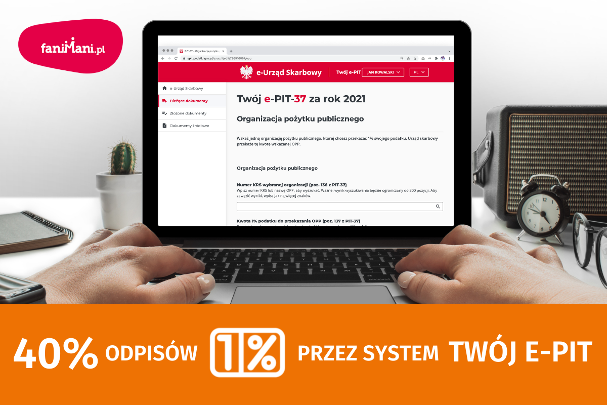Aż 40% osób, które podczas ubiegłorocznego rozliczania się z fiskusem za poprzedni rok przekazało swój 1%, składając PIT za pośrednictwem rządowego programu „Twój e-PIT”, dostępnego na stronie podatki.gov.pl. Taką liczbę podało Ministerstwo Finansów w odpowiedzi na zapytanie wystosowane przez FaniMani.