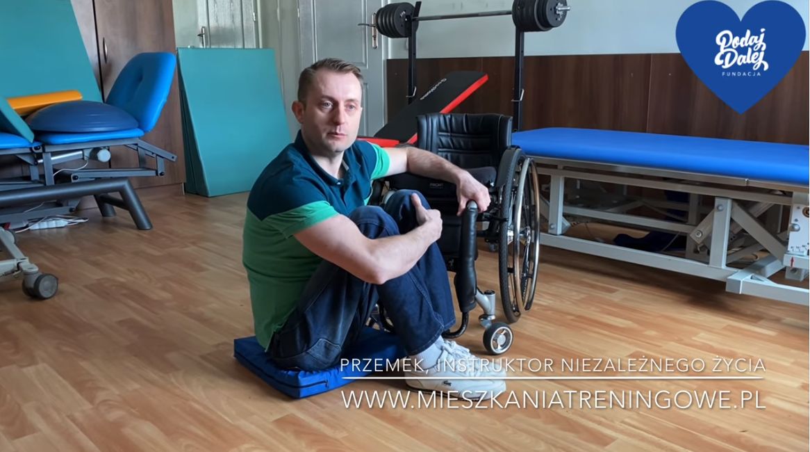 Przemek Stelmasik na co dzień jest instruktorem niezależnego życia w mieszkaniach treningowych w Koninie i wspiera ludzi, którzy nagle stracili sprawność. Pokazuje jak być bardziej samodzielnym i niezależnym, jak nauczyć się nowego życia… na wózku inwalidzkim.