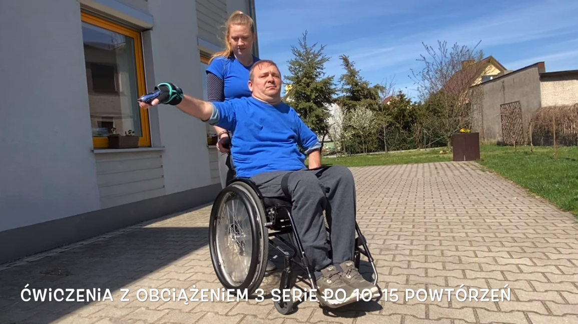 Maciej Wiatrowski, który od 26 lat porusza się na wózku pokazuje, jak wygląda jego codzienny rozruch i zachęca osoby z czterokończynowym porażeniem do codziennej aktywności – filmik TUTAJ.