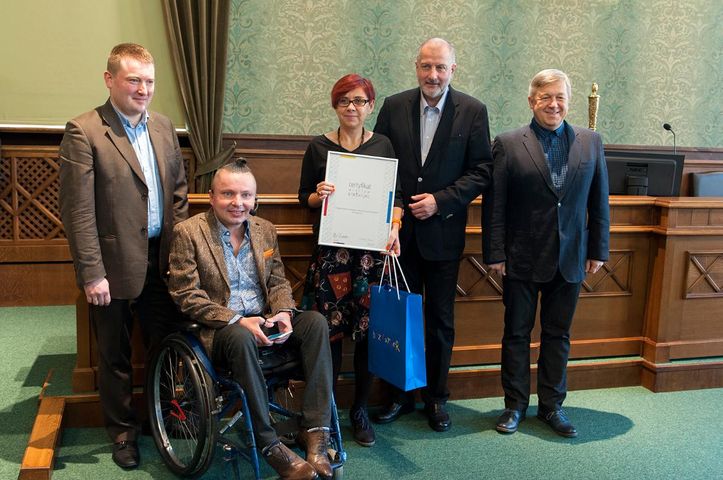 Certyfikat „Wrocław bez barier” promuje dobre postawy oraz działania podejmowane na rzecz pełnej dostępności i integracji. Niepełnosprawnik został nagrodzony w kategorii działania innowacyjne w zakresie powszechnej dostępności. Jak podczas wręczania certyfikatu mówił Bartłomiej Skrzyński - Rzecznik miasta Wrocławia ds. Osób Niepełnosprawnych: „To jest trzeci rok trwania miejskiego projektu, wyjątkowego w skali kraju. TUS skanuje też obiekty w Warszawie, Toruniu i Poznaniu. Te działania udowodniły ich potrzebę funkcjonowania w przestrzeni. Bo przecież wspiera to też osoby o ograniczonej mobilności, a we Wrocławiu poszerzyliśmy „pomiary” o miejsca dla Rodziców z dziećmi. Gdy w 2010 roku inicjowałem plebiscyt rozmawialiśmy z obecną wiceprezydent Wrocławia Anną Szarycz o tej kategorii. Nie spodziewaliśmy się, że każdego roku nagrodzeni, będą tak merytorycznie wybitni.” Certyfikat wręczał Rafał Dutkiewicz Prezydent Wrocławia. http://blogi.wroclaw.pl/miasto/certyfikaty-i-udoskonalanie-wroclawia-bez-barier/