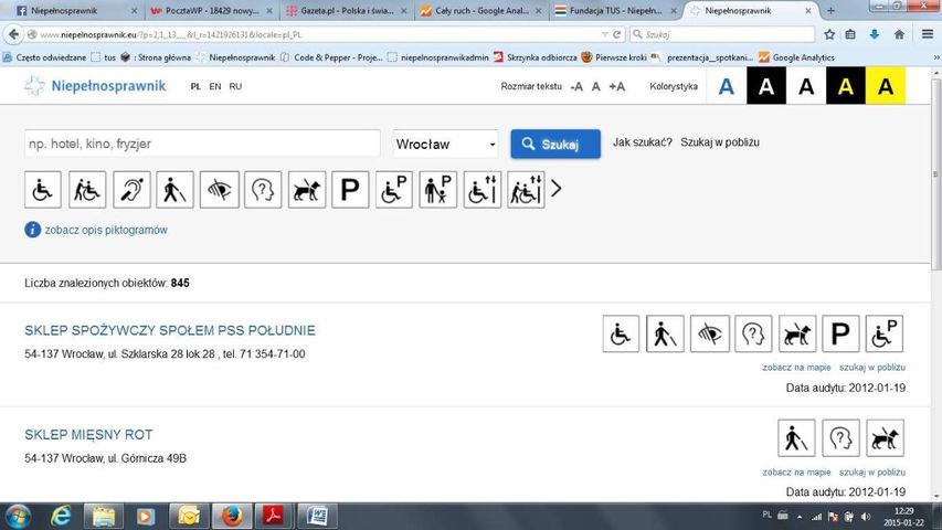 W styczniu 2015 r. Fundacja TUS podjęła współpracę z Urzędem Miasta Wrocław i realizuje na terenie Wrocławia w okresie od 19 stycznia do 31 grudnia 2015 projekt „Niepelnosprawnik”. Oznacza to zarówno dla niepełnosprawnych mieszkańców Wrocławia, a także odwiedzających miasto turystów, dalszy przyrost liczby instytucji opisanych w Niepełnosprawniku i aktualizację już wpisanych obiektów.