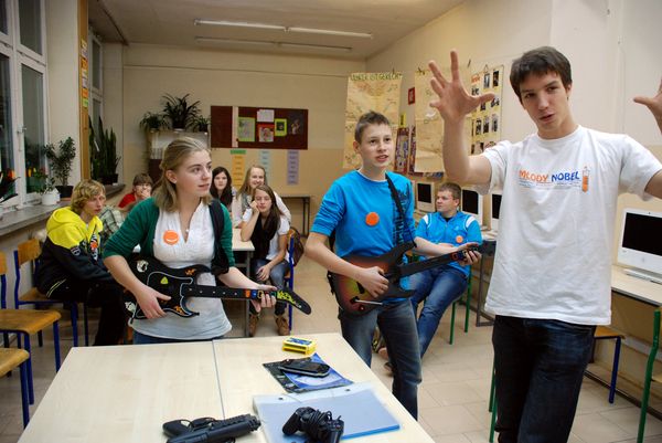 Prawdziwe emocje wywołały zajęcia z informatyki - ich celem było zapoznanie z nowoczesnymi kontrolerami w grach video. Każdy miał okazję przekonać się, jak zmieniała się historia owych urządzeń oraz spróbować swoich sił w roli gitarzysty, podczas testowania gitar-kontrolerów.