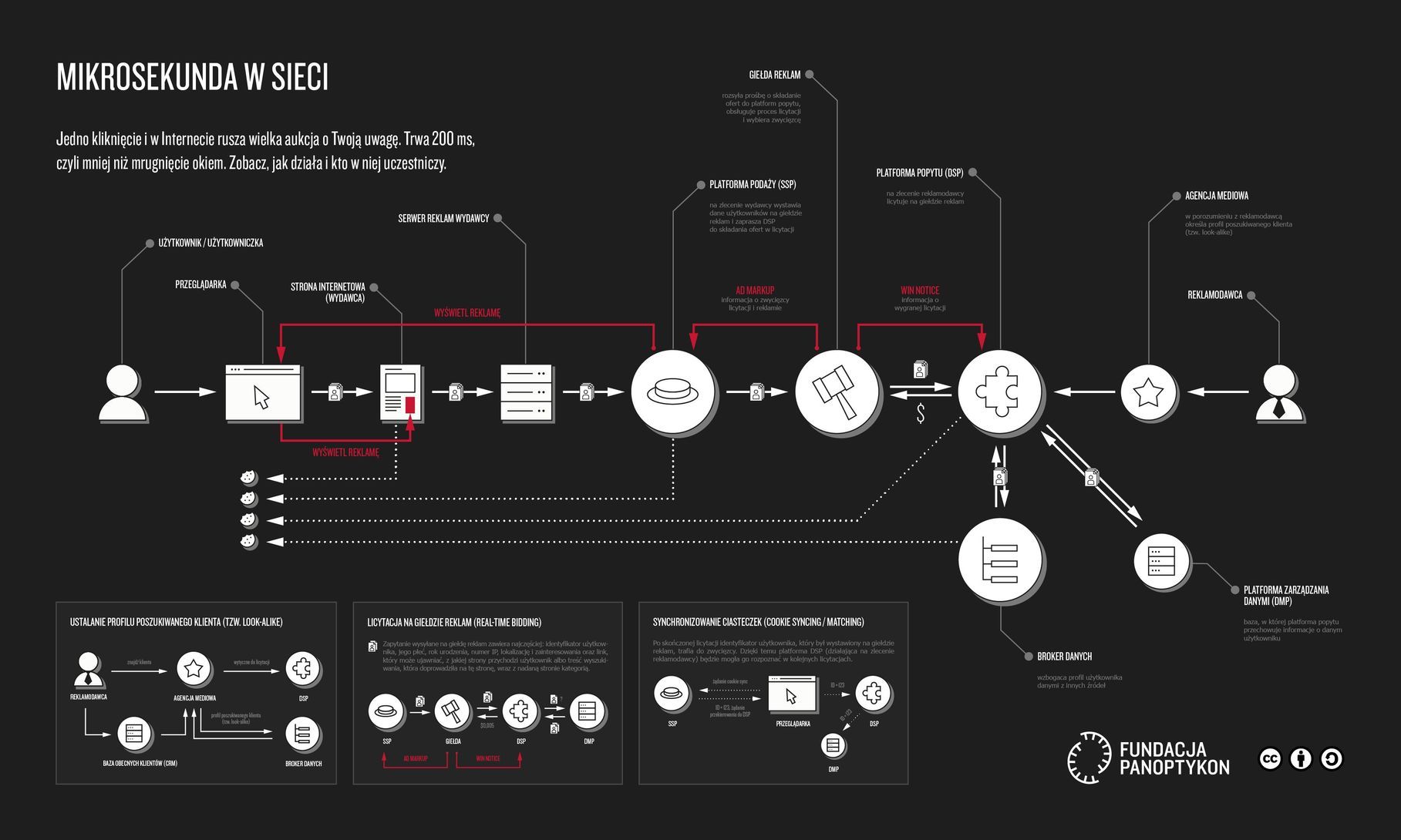 Sam użytkownik nie ma w tym systemie ani głosu, ani praw. Nie wie, do kogo trafiają jego dane ani jakie wnioski są na ich podstawie wyciągane. Nie wie nawet, pod jakim identyfikatorem figuruje w poszczególnych bazach danych, więc nie jest w stanie skorzystać z praw, które daje mu RODO. Fundacja Panoptykon domaga się zmiany tego stanu rzeczy i występuje do Prezesa Urzędu Ochrony Danych Osobowych ze skargami przeciwko IAB i Google – nieformalnym regulatorom rynku reklamy interaktywnej.