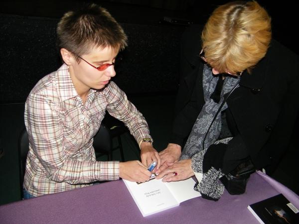 Głównym punktem imprezy była promocja książki "Jak z białą laską zdobywałam Belgię". Niewidoma Hanna Pasterny opowiada w niej o swoim pobycie w Liege, gdzie jako wolontariusz pracowała wśród emigrantek z krajów arabskich. Książka jest swoistym pamiętnikiem, w którym autorka opisuje bariery architektoniczne i mentalne z jakimi przyszło się jej zmierzyć w czasie czterech miesięcy pobytu w Belgii. Nie są to jednak tylko suche zapiski: forma jest lekka, często dowcipna, choć ciągle skłaniająca do głębszych refleksji. Osoby przysłuchujące się rozmowie Hani z red. Iloną Raczyńską-Ciszak włączyły się w nią, aktywnie zadając wiele pytań.