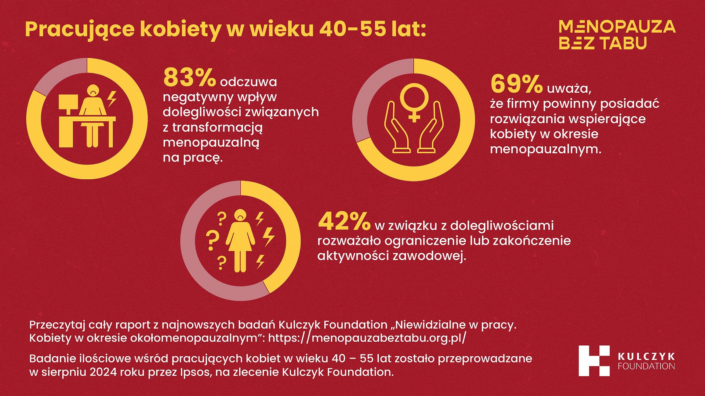 Przeczytaj cały raport z najnowszych badań Kulczyk Foundation „Niewidzialne w pracy. Kobiety w okresie okołomenopauzalnym”: menopauzabeztabu.org.pl/.