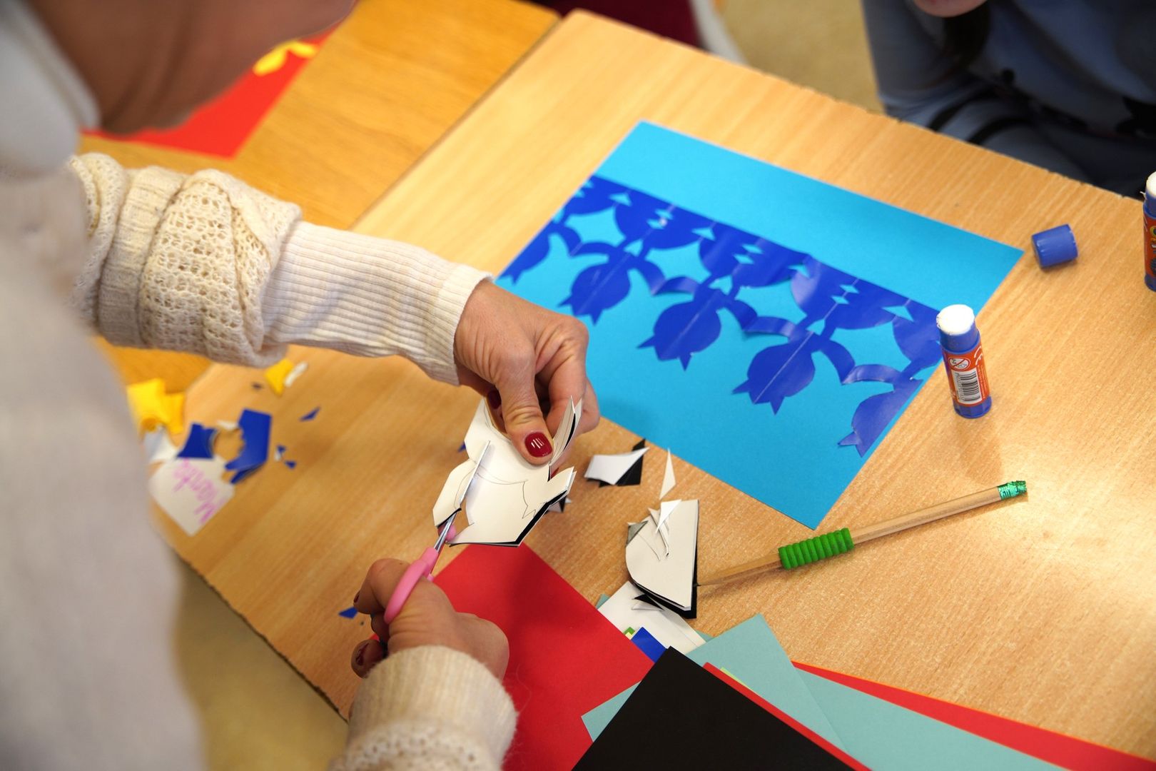 Nożyczki, papier, inspiracje z Łowicza – a w praktyce szkoła decyzji: jak rozłożyć akcenty, co wyciąć, co zostawić. Dla wielu to pierwsze spotkanie z pojęciami symetrii, kontrastu, rytmu w żywej, dotykalnej formie. Jedna z animatorek trafnie podsumowuje: „Wycinanka jest bezlitosna i wyrozumiała jednocześnie – uczy, że każdy błąd można przekuć w nowy pomysł. Dla dzieci niesamowitym jest to, że po kilku ruchach nożyczkami na złożonej wcześniej kartce powstaje wzór. Bardzo często obserwuję ich pełne zaskoczenia buzie, kiedy rozkładają kartkę i widzą coś pięknego, co sami zrobili”.