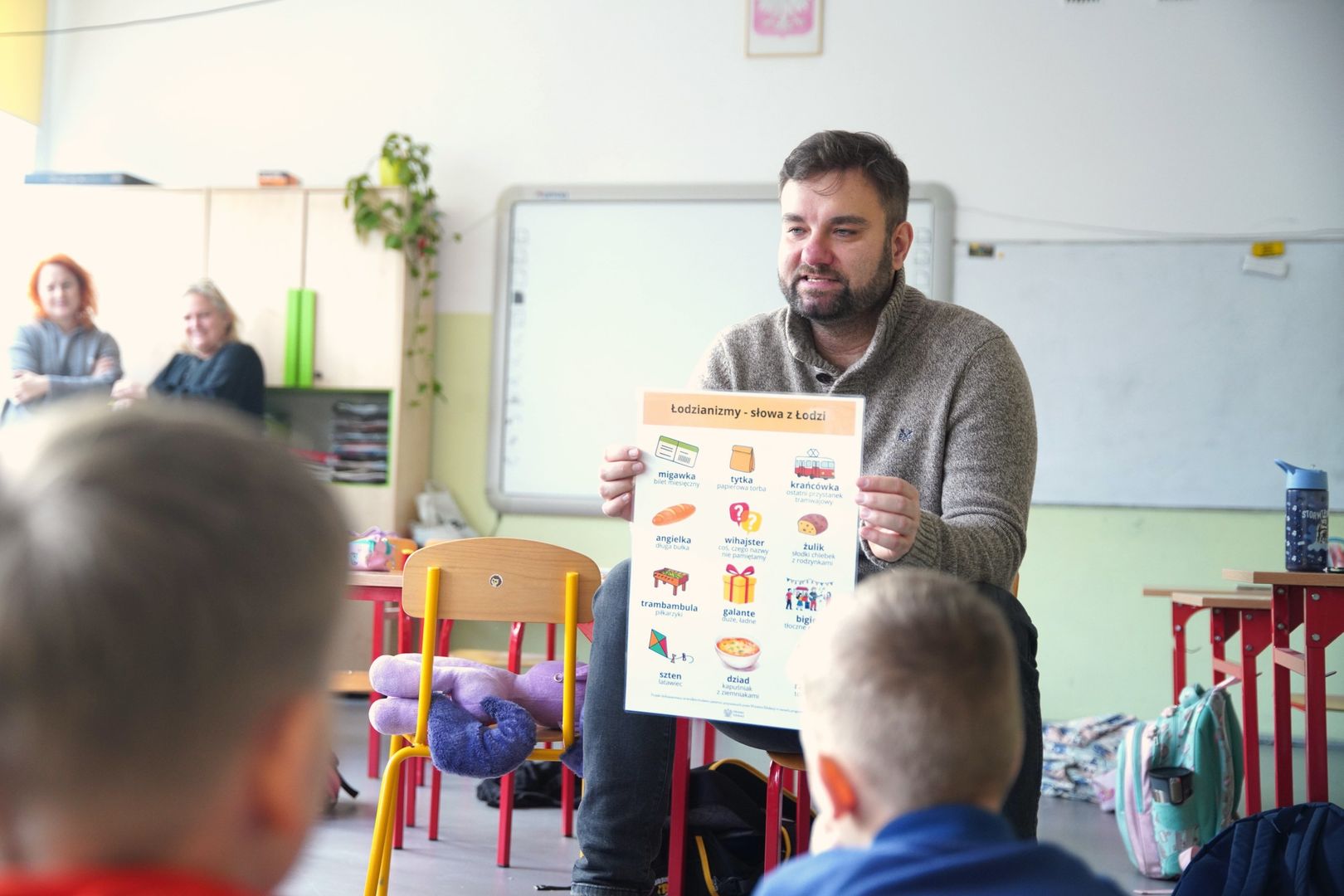 Łodzianizmy działają, gdy są żywe: jako rekwizyty w scenkach, napisy na „straganach słów”, mini‑słowniczek stworzony przez klasę i… mikro‑performans na koniec.