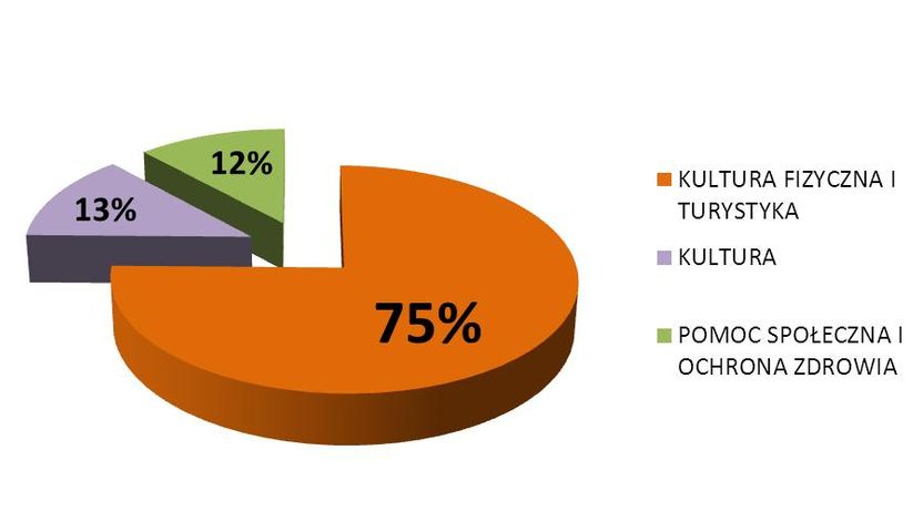 W tegorocznej edycji konkursu na dotację z urzędu miasta nie zmienił się natomiast podział na poszczególne obszary wsparcia. Ciągle prym wiedzie kultura fizyczna i turystyka. Na tę działkę przeznaczono 700 tys. złotych. Największymi beneficjentami pomocy okazali się Międzyszkolny Klub Sportowo-Turystyczny „Astra” (240 tys. zł), Miejski Klub Sportowy Arka (150 tys. zł), Uczniowski Klub Sportowy „Ósemka” (46 tys. zł), Kajakowy Klub Sportowy (78 tys. zł), Uczniowski Klub Sportowy ARES (65 tys. zł).