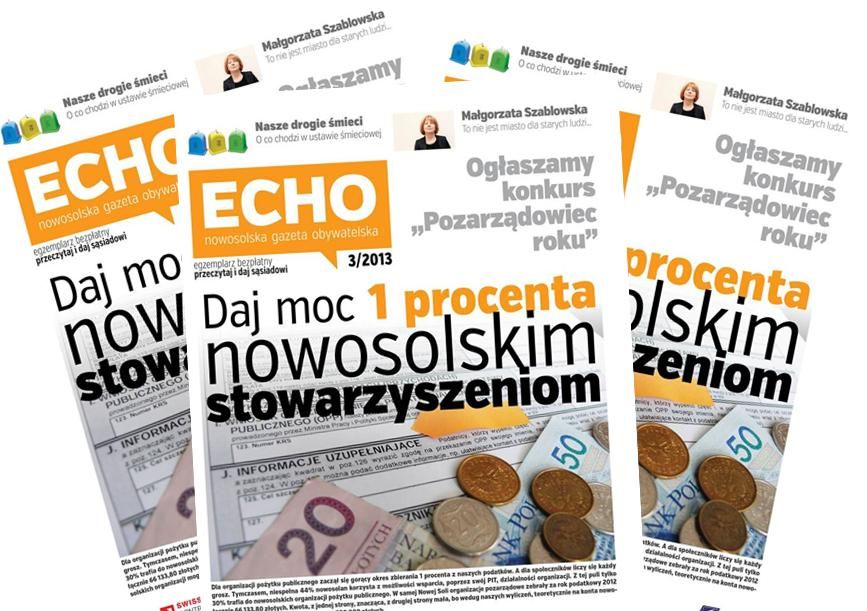 "Echo Nowosolska Gazeta Obywatelska" wychodzi co miesiąc w nakładzie siedmiu tysięcy egzemplarzy. Piszemy o organizacjach pozarządowych, ważnych wydarzeniach i sprawach publicznych. Nie zwlekaj, przyłącz się do nas!