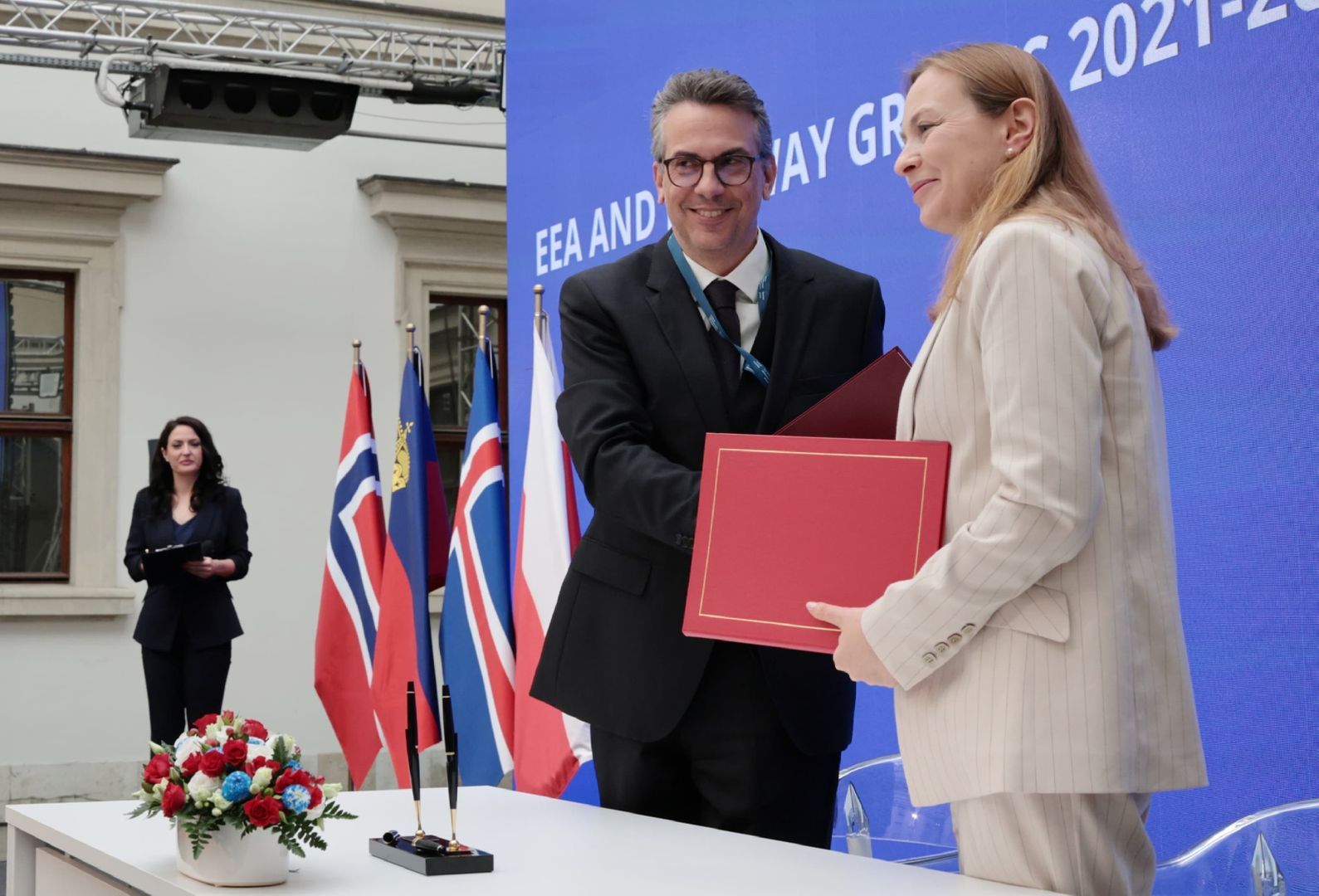 – Polska jest pierwszym krajem w Unii Europejskiej, który podpisuje Memorandum of Understanding i otrzymuje 1/4 całej puli inwestycyjnej. Mamy bardzo ambitny cel, aby pierwsze programy ruszyły na początku przyszłego roku - o wiele szybciej niż jest to formalnie wymagane. To jest największa pula inwestycyjna, która z każdej perspektywy na perspektywę rośnie. W obecnej będą to 4 miliardy złotych - ogromne środki na rozwój Polski, rozwój społeczności lokalnych, polskiej demokracji, organizacji samorządowych i polskiej kultury – powiedziała minister Katarzyna Pełczyńska-Nałęcz.