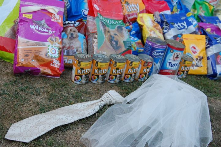 Łącznie ponad 140 kilogramów karmy dla psów i kotów - suchy pokarm, puszki i dwa bukiety zrobione z przysmaków to efekt ślubnej zbiórki jaka odbyła się w Olsztynie. Zgromadzona żywność została przekazana organizacji działającej na rzecz bezdomnych zwierząt.