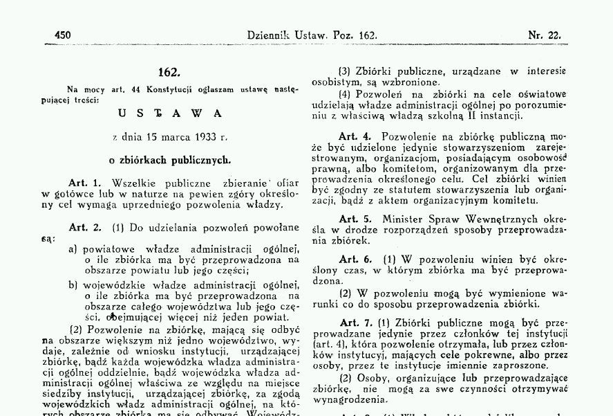 - Powstanie nowa ustawa o zbiórkach publicznych, obecna – z 1933 roku – zostanie uchylona.