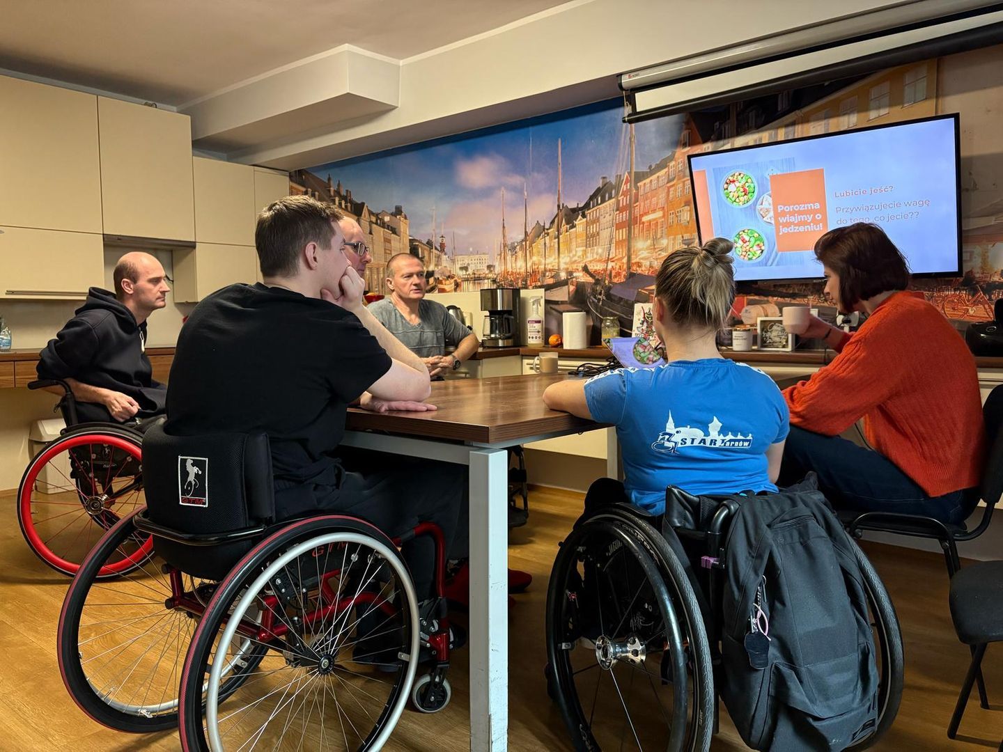 - Dostosowane do osób z niepełnosprawnościami mieszkanie – dwie wyposażone w pełni kuchnie, dwie łazienki i kameralne pokoje dwuosobowe